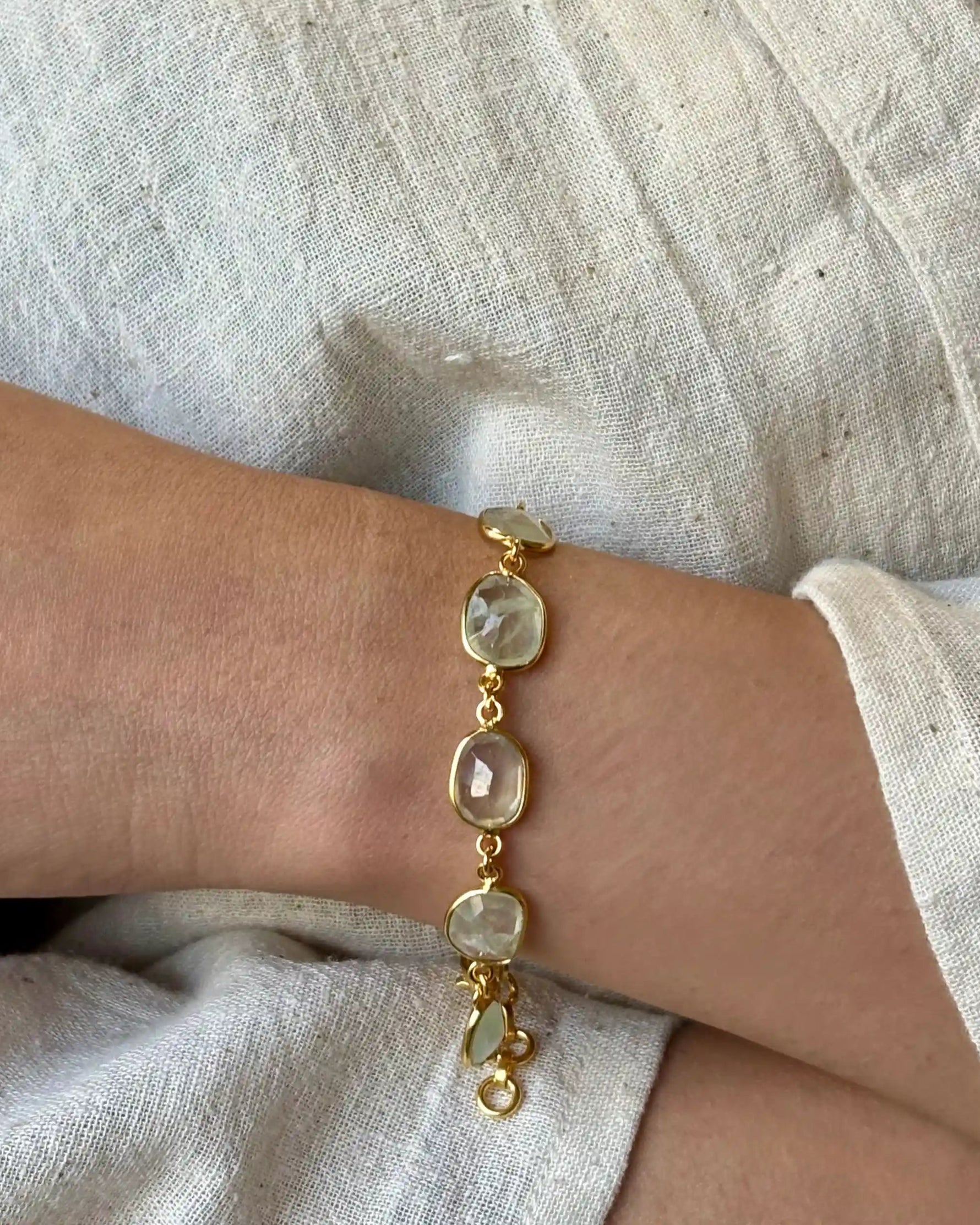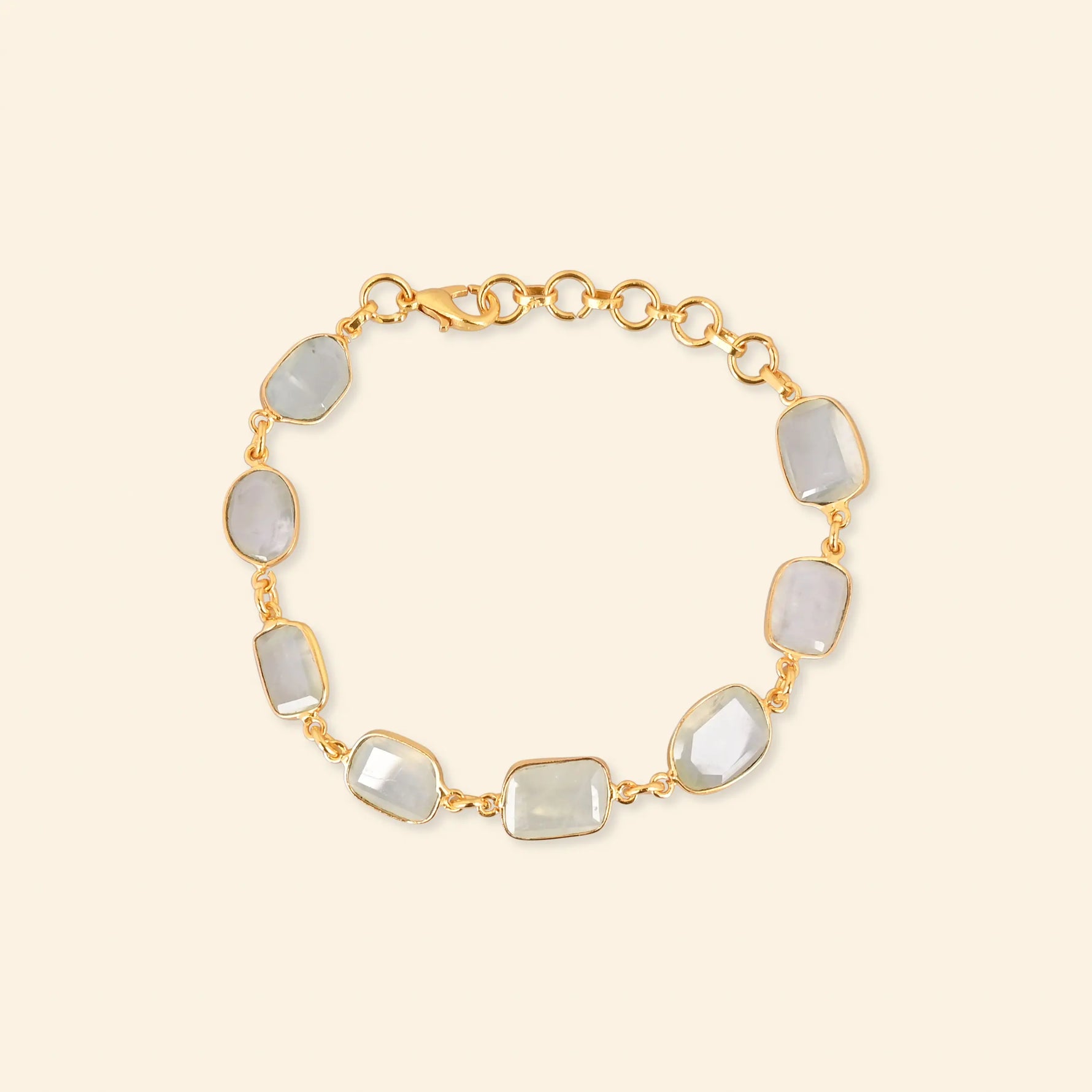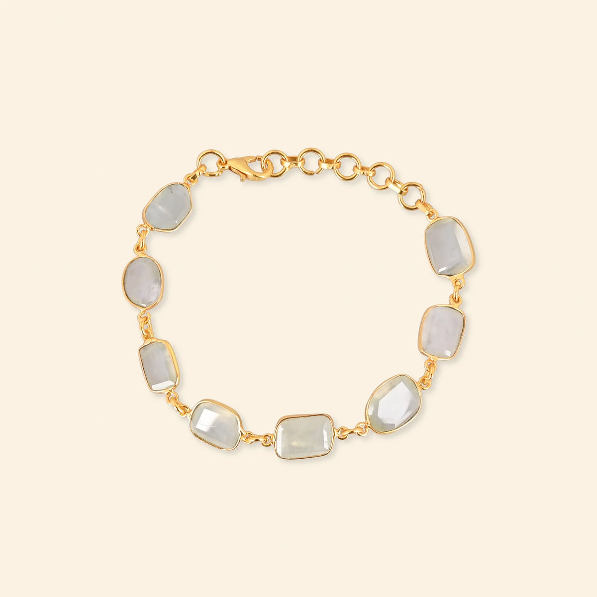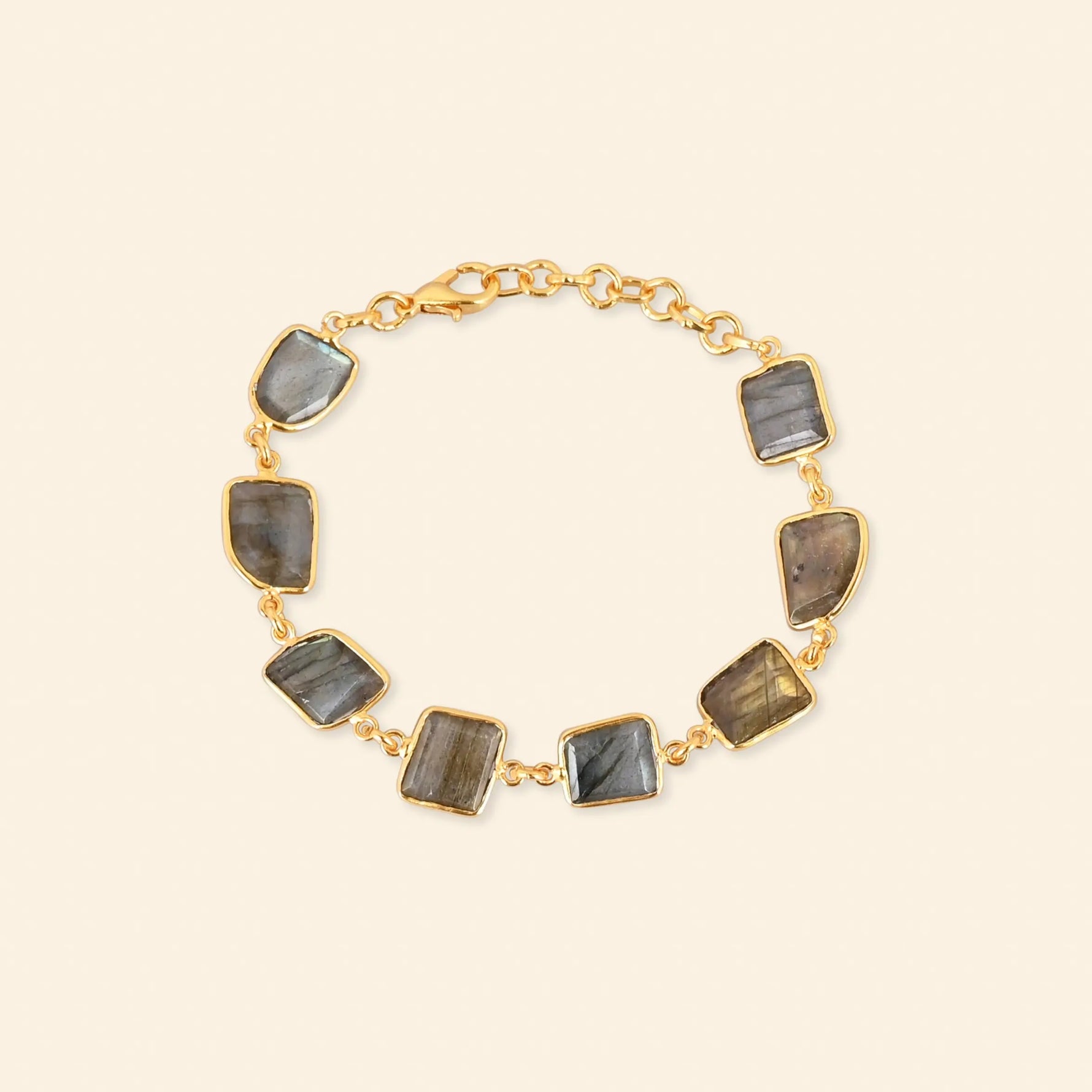 - Material: Brass-based bracelet with 18-karat gold plating