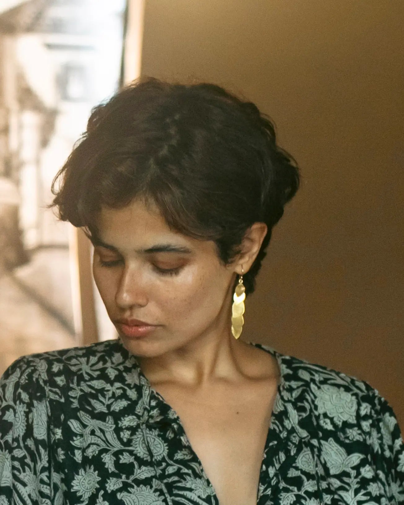 - Material: Brass-based earrings with 18-karat gold plating