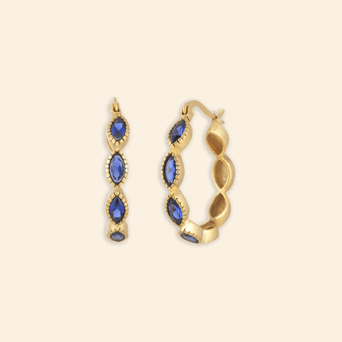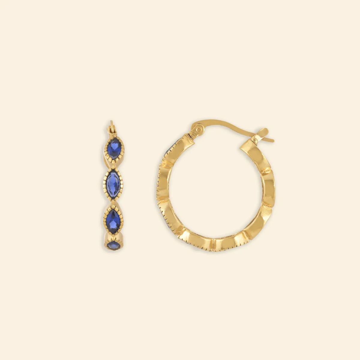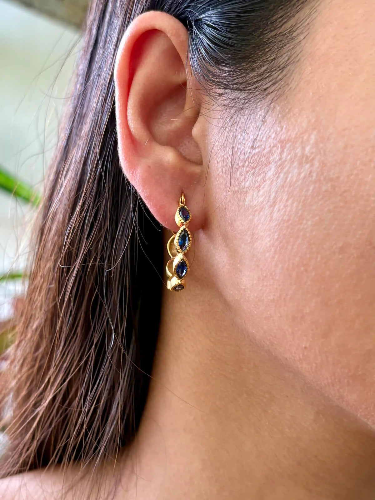 The Circles of Persepolis echo the carved arches and repeating motifs of the ancient Persian capital. The textured hoop design reflects the city's architectural symmetry, the choice between Blue Kyanite and Green Onyx doublets recall the rich inlays of royal halls- small yet powerful symbols of a civilization built to endure.