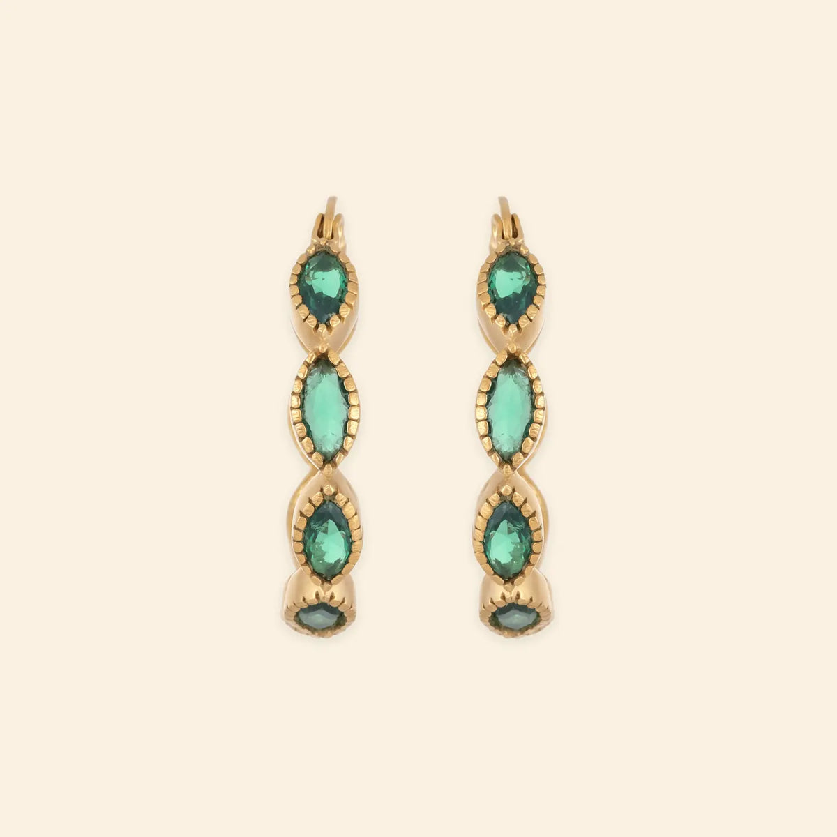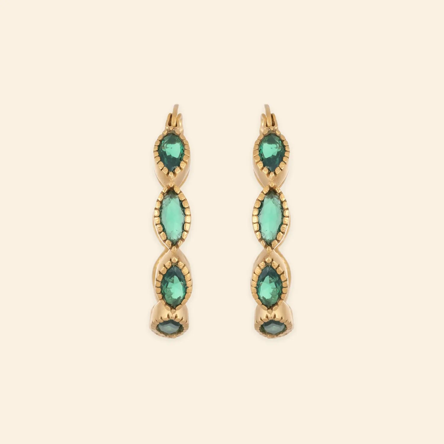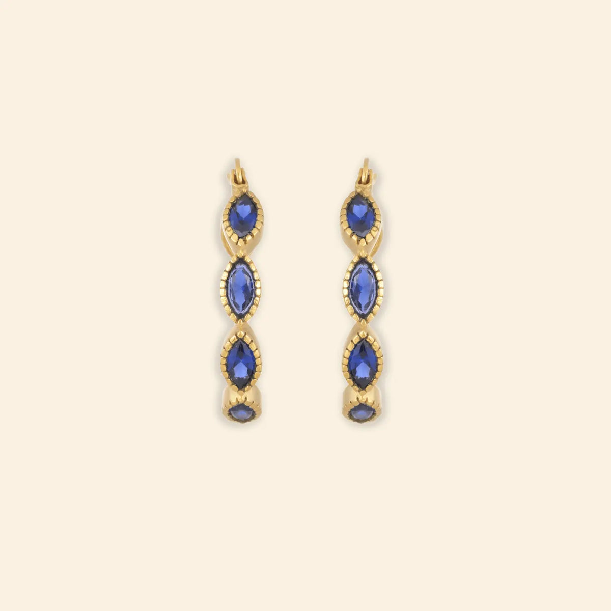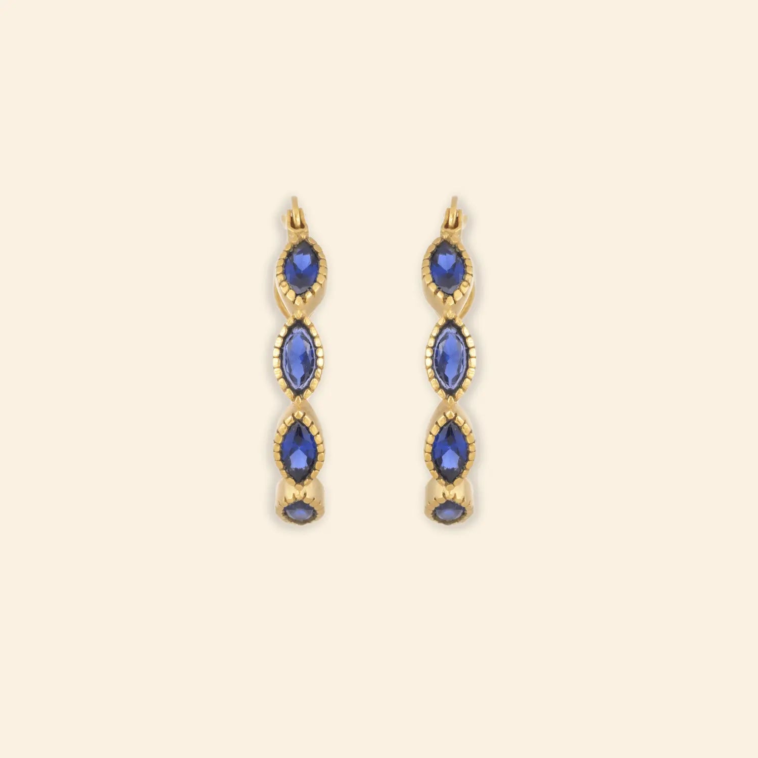 The Circles of Persepolis echo the carved arches and repeating motifs of the ancient Persian capital. The textured hoop design reflects the city's architectural symmetry, the choice between Blue Kyanite and Green Onyx doublets recall the rich inlays of royal halls- small yet powerful symbols of a civilization built to endure.