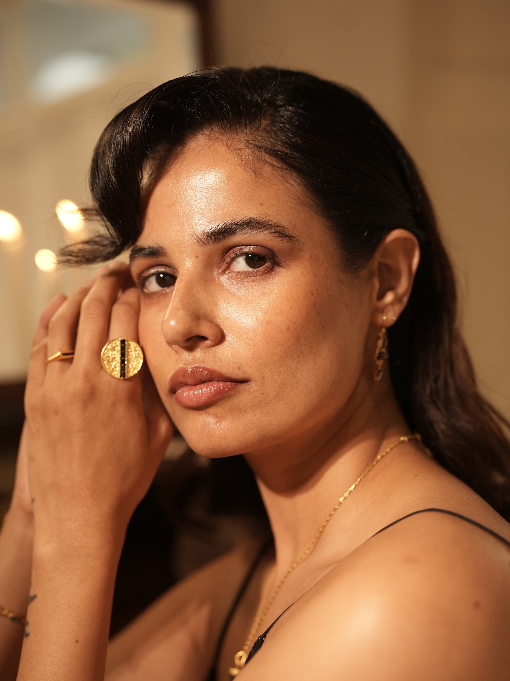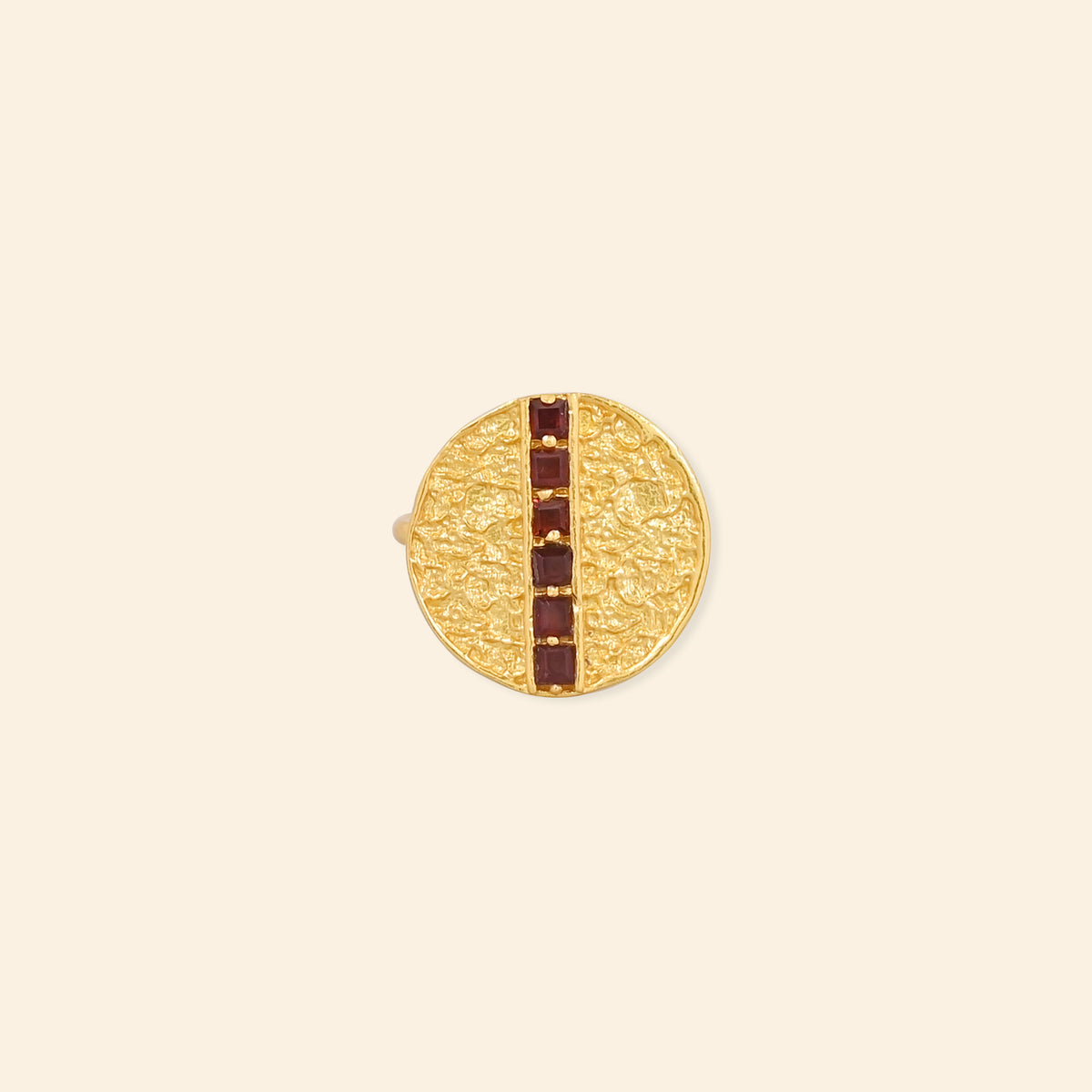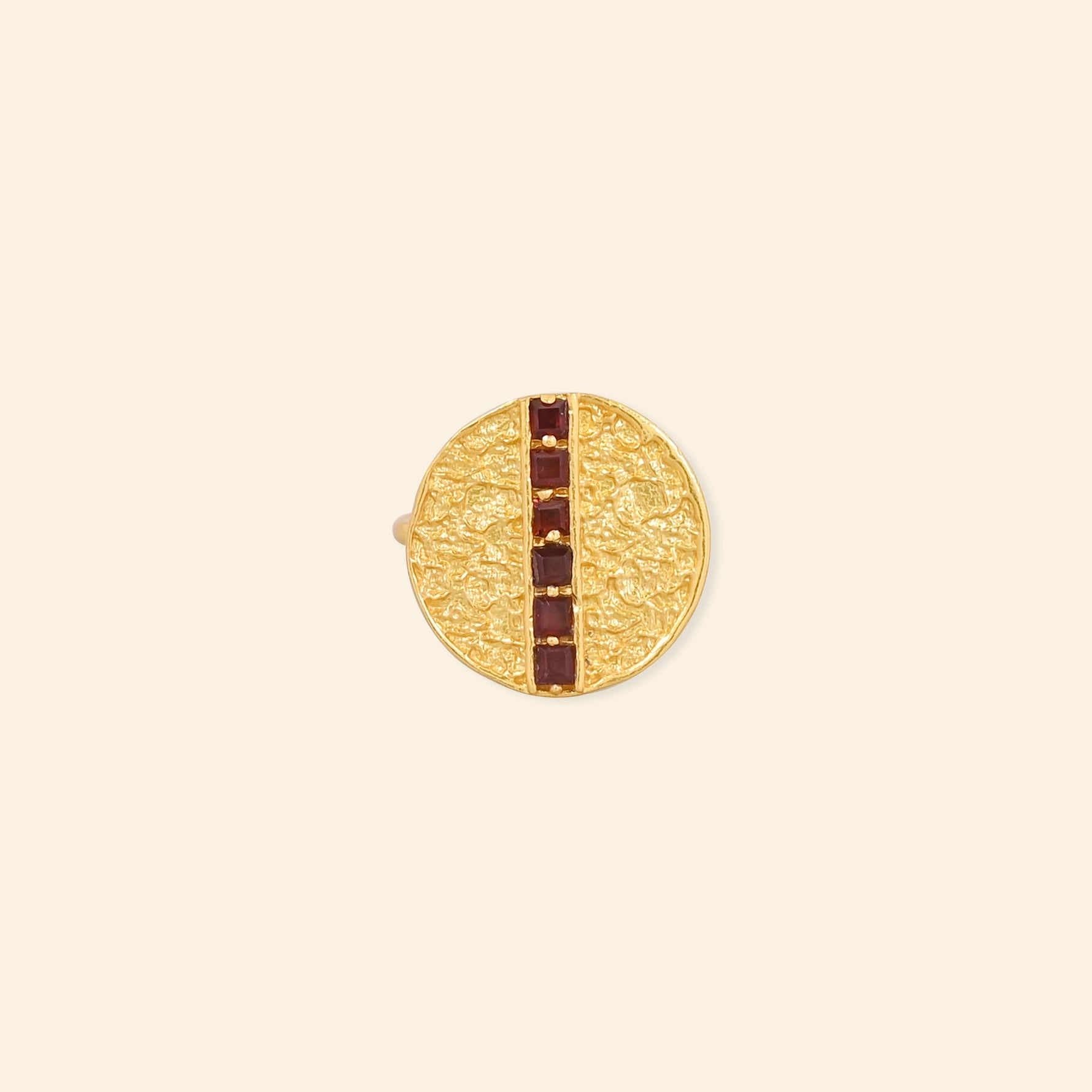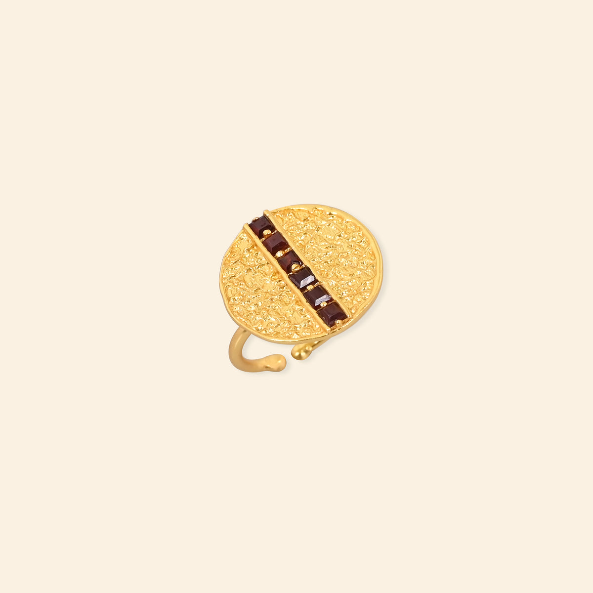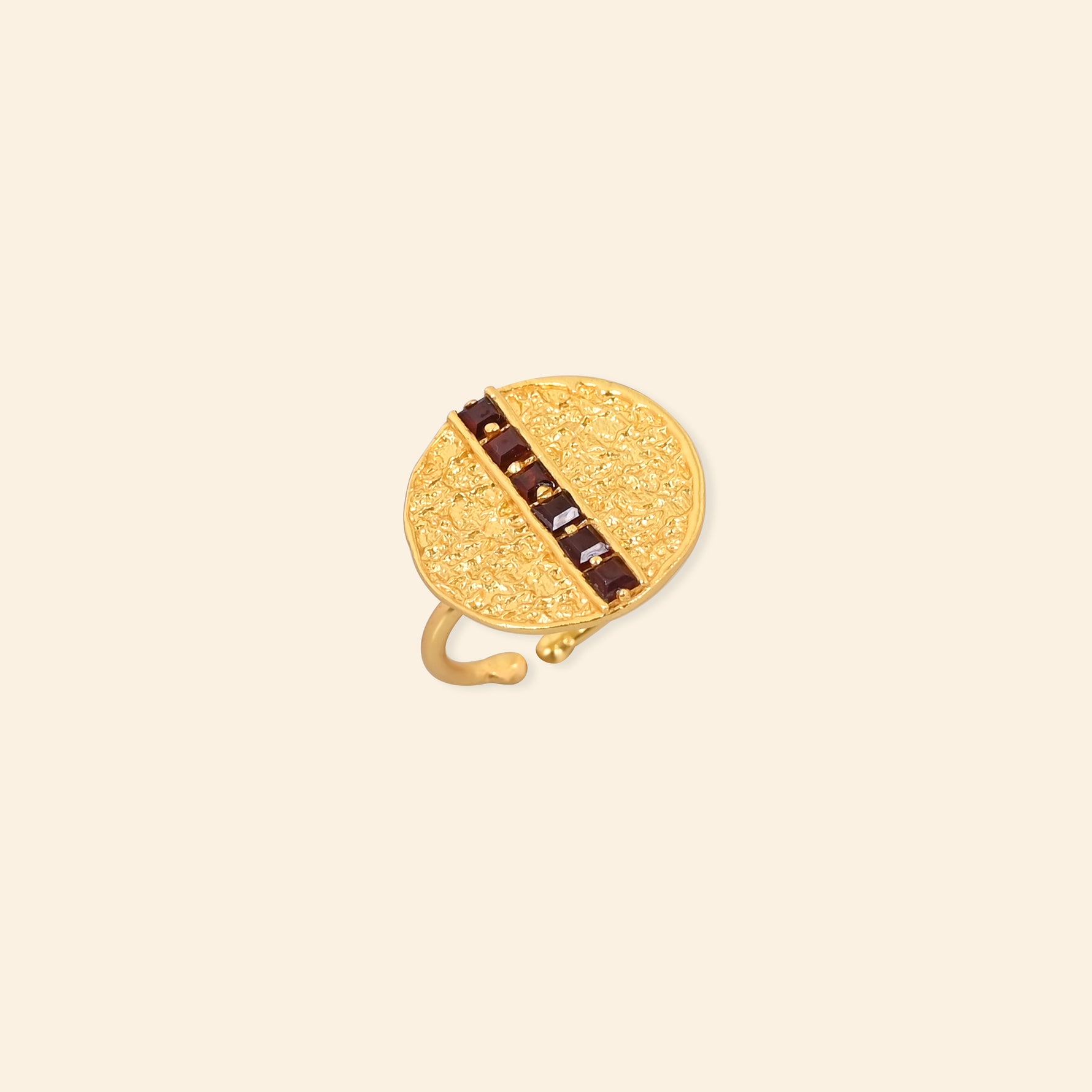 - Material: Brass-based ring with 18-karat gold plating