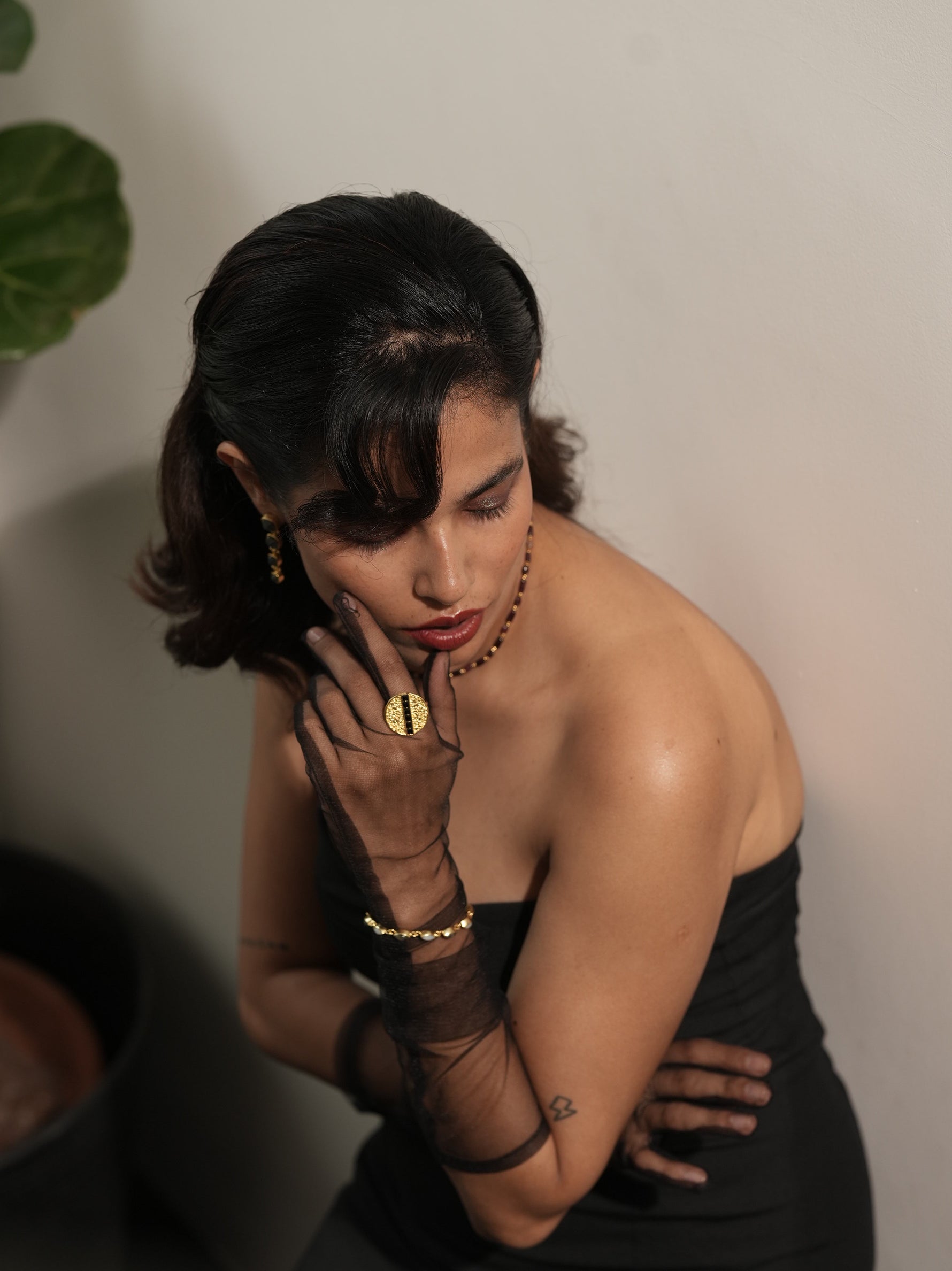 Our gold jewelry is hand-crafted in 18K gold on brass. To avoid oxidization of the gold plating, avoid extended direct contact with water, cleaning solutions and perfumes. For best care, store your jewellery in the provided original packaging.