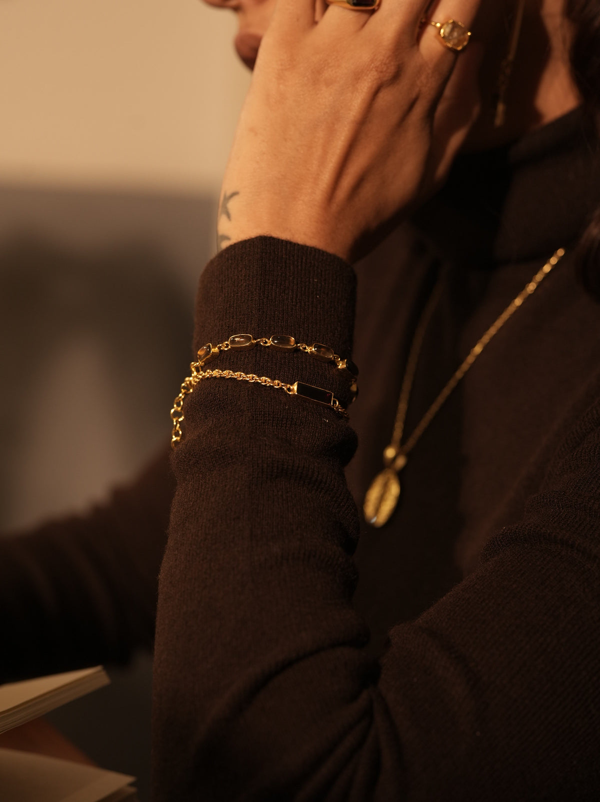 Our gold jewelry is hand-crafted in 18K gold on brass. To avoid oxidization of the gold plating, avoid extended direct contact with water, cleaning solutions and perfumes. For best care, store your jewellery in the provided original packaging.
