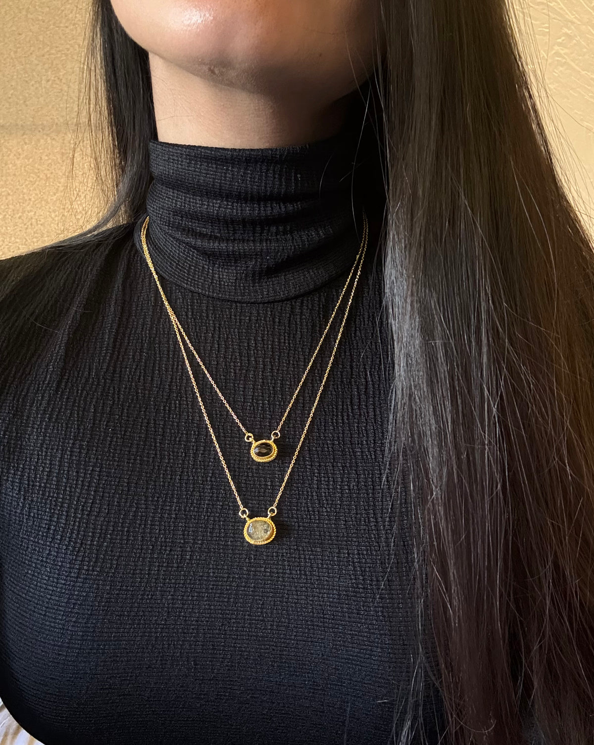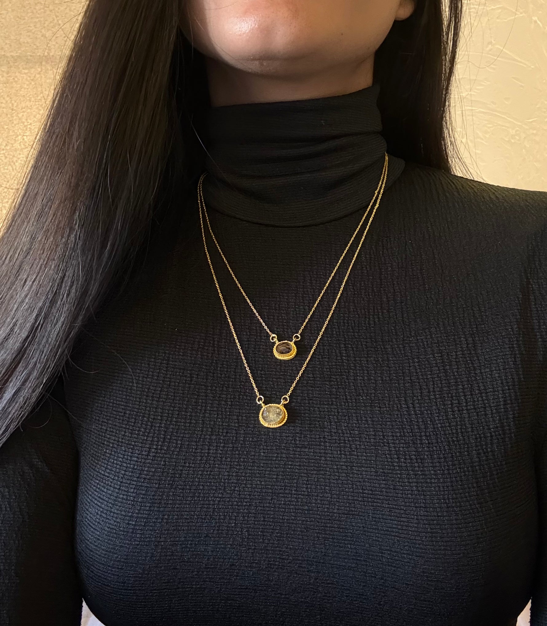 - Material: Brass-based double layer necklace with 18-karat gold plating