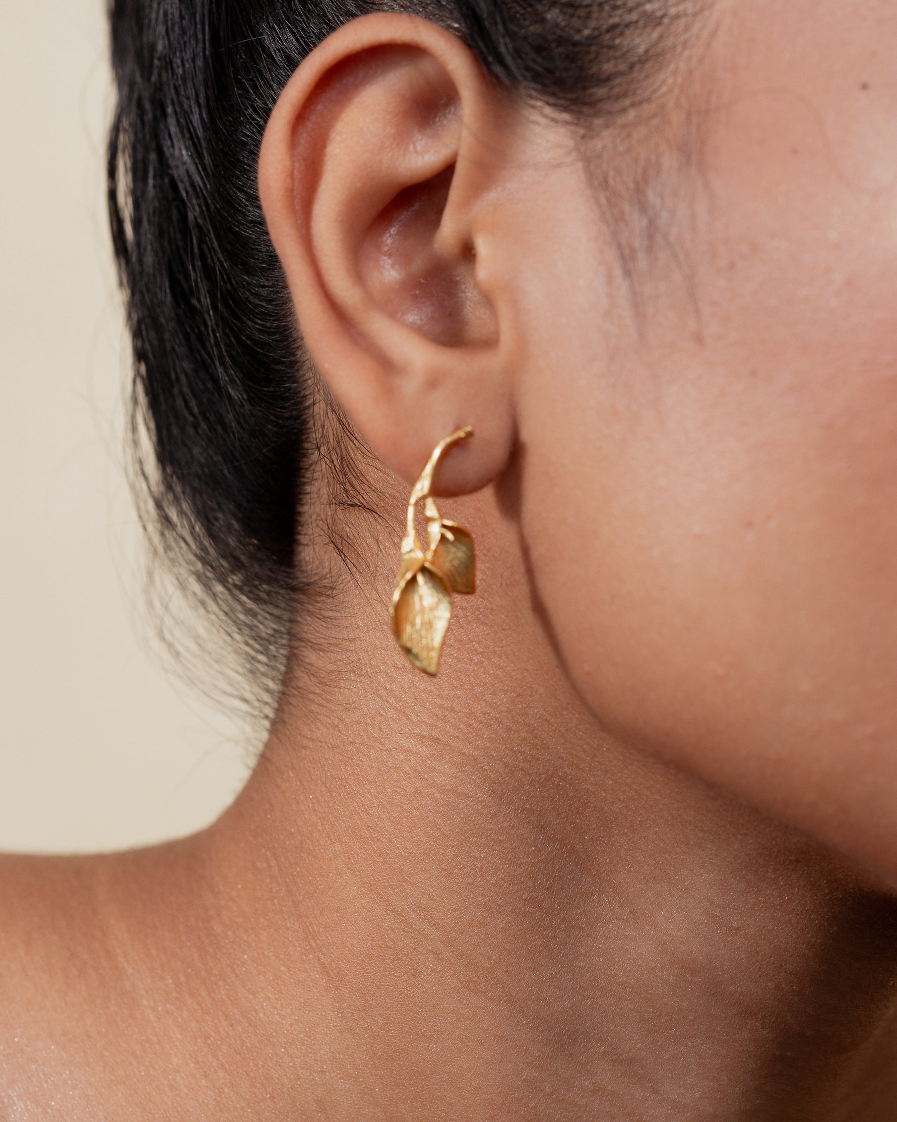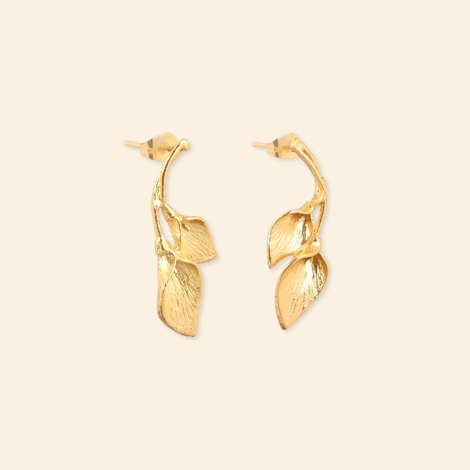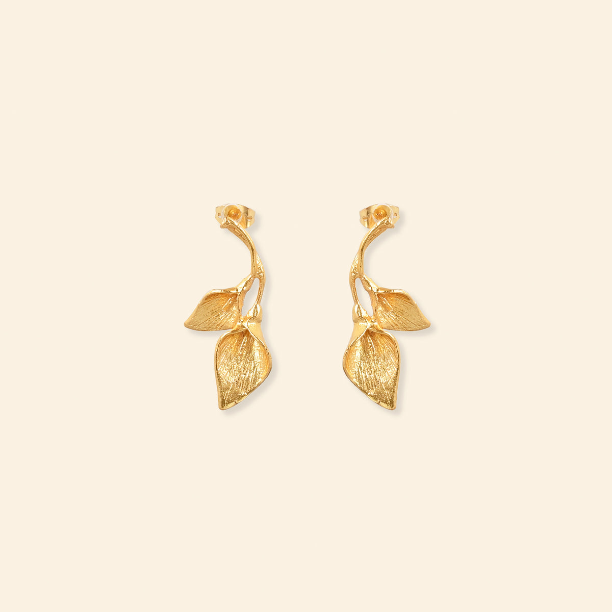 - Material: Brass-based earrings with 18-karat gold plating