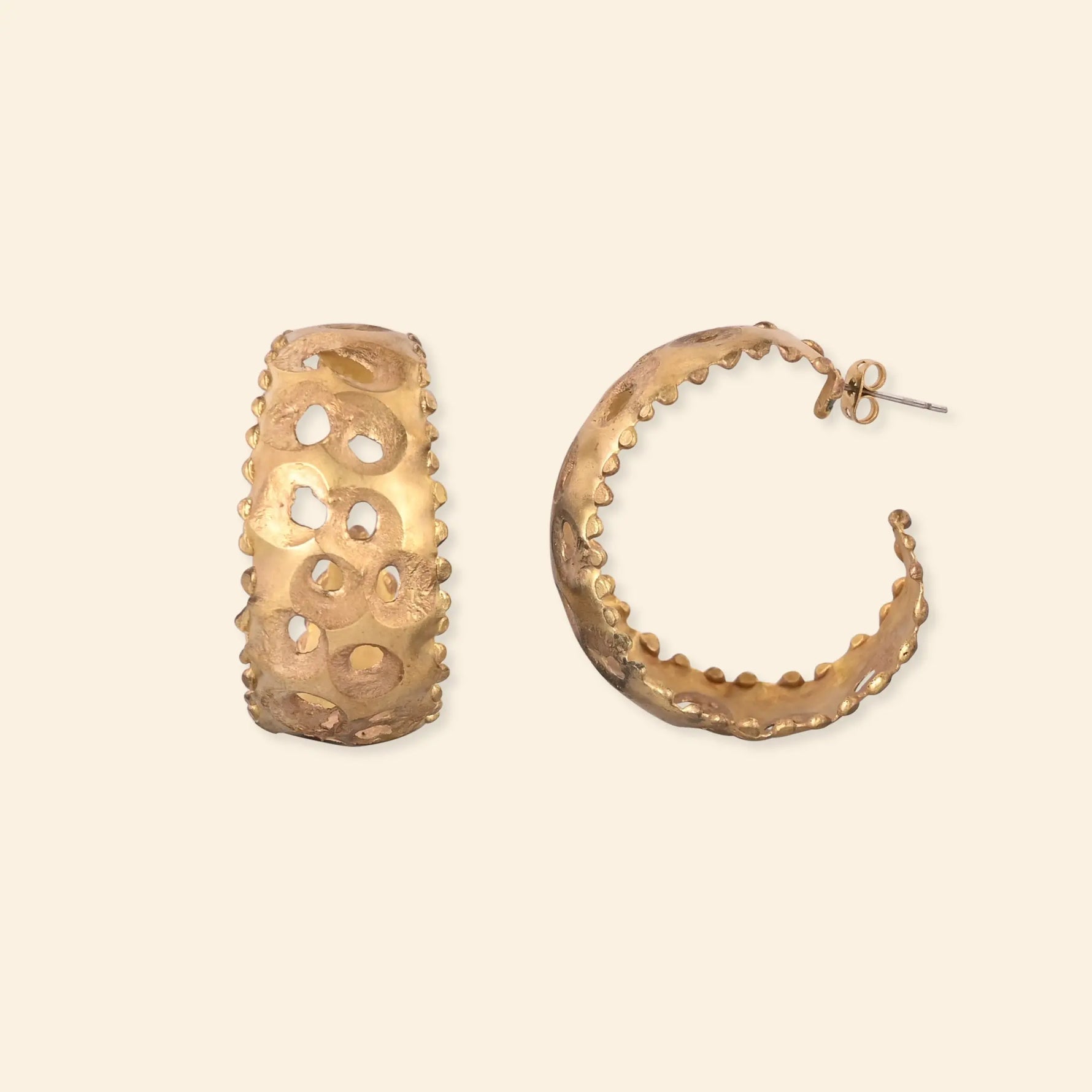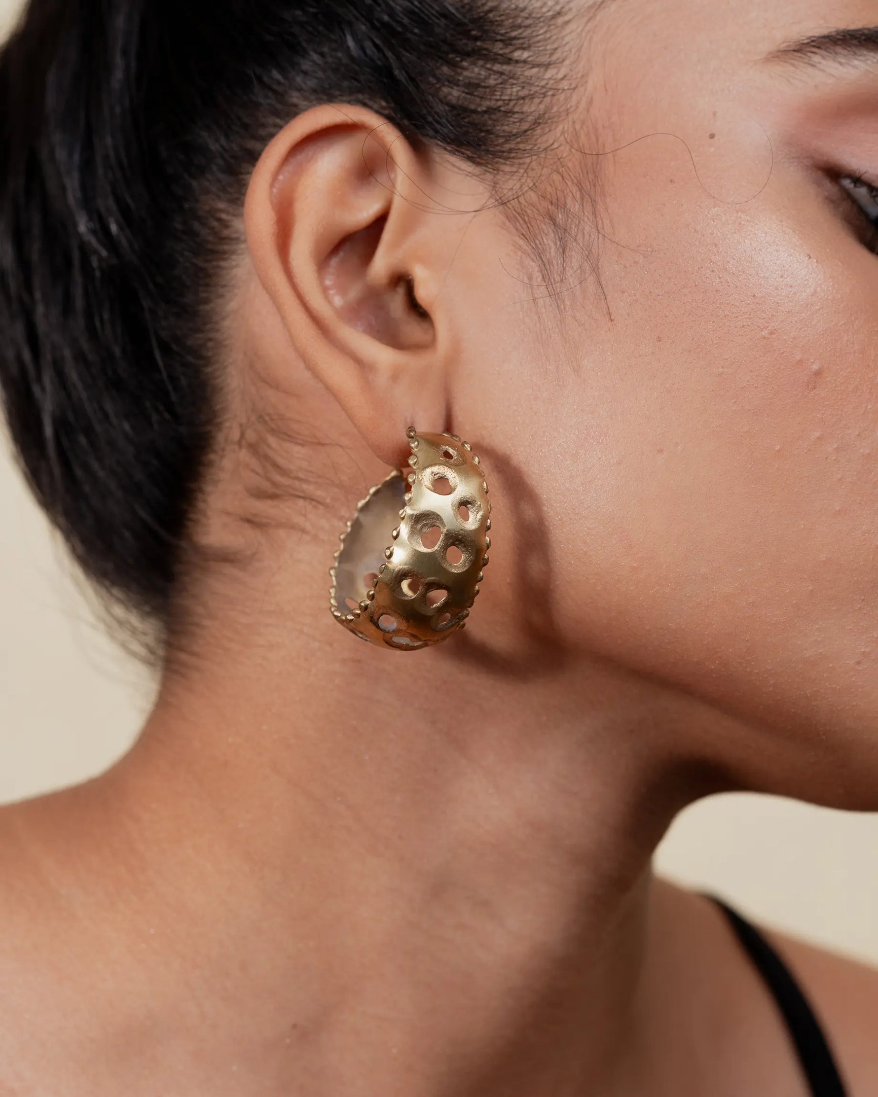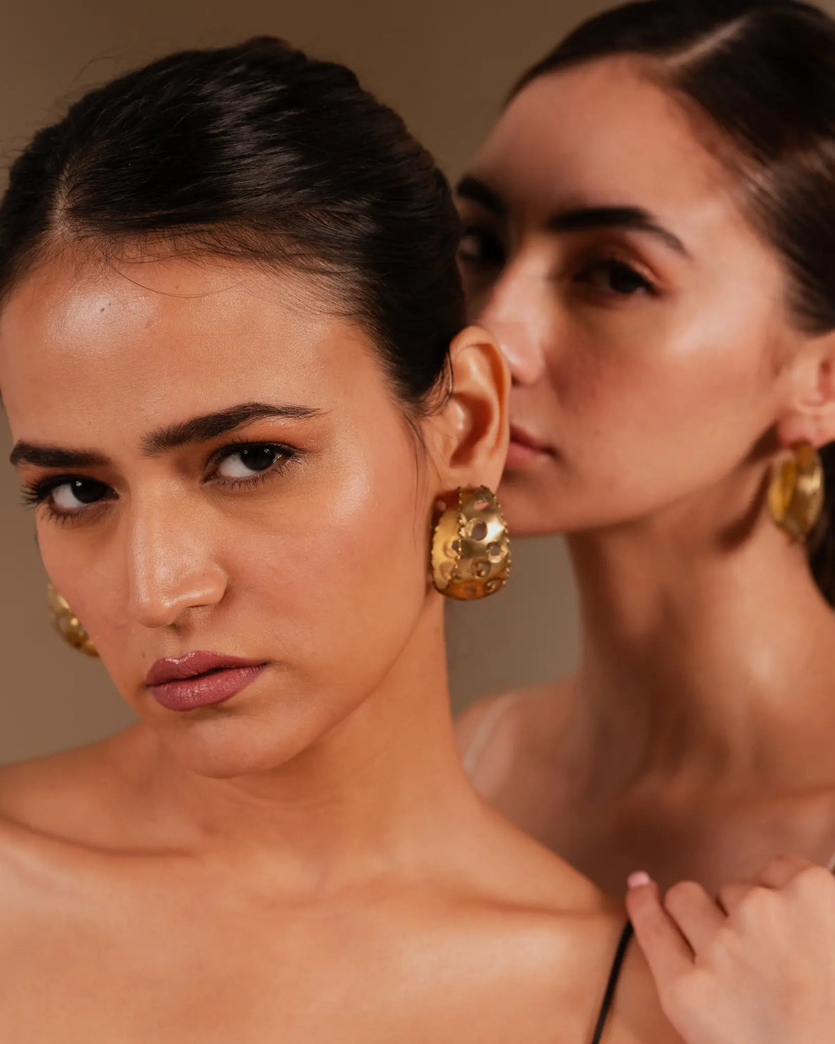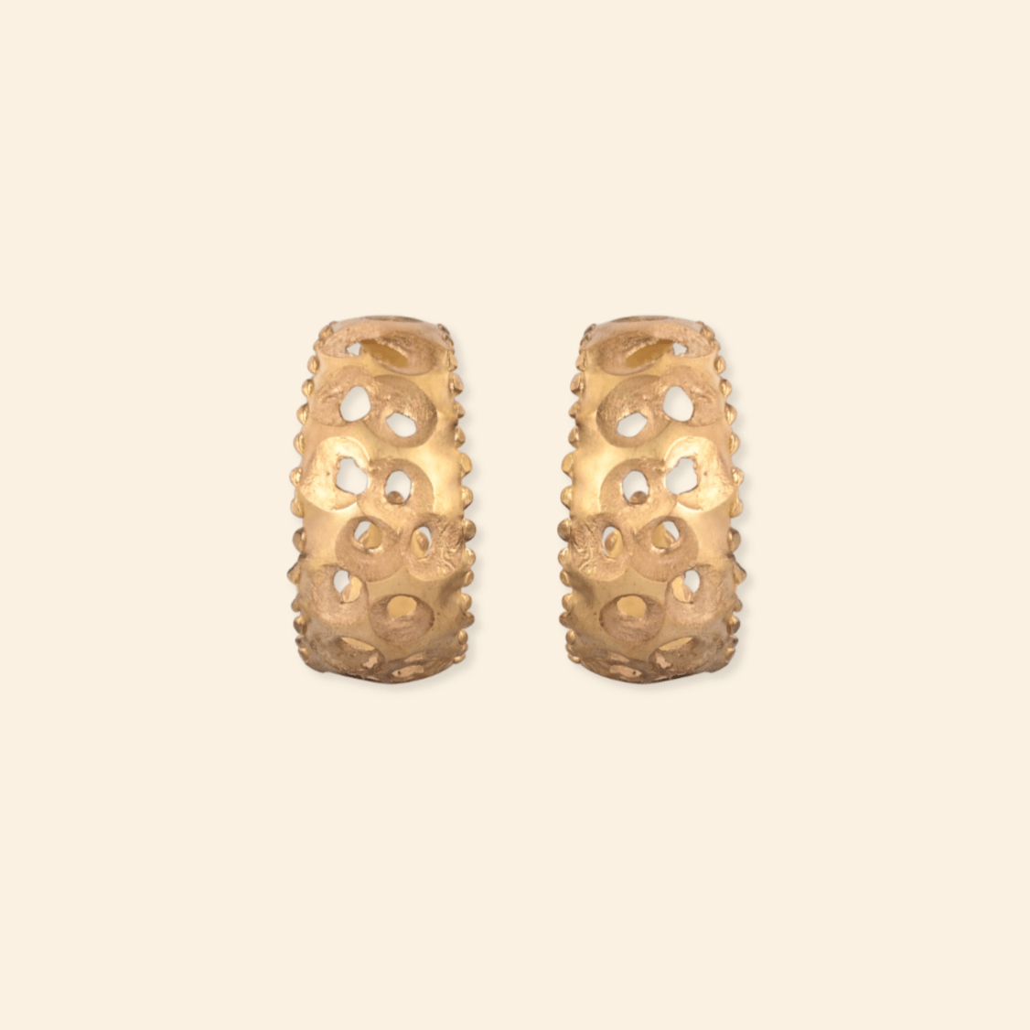 Our gold jewelry is hand-crafted in 18K gold on brass. To avoid oxidization of the gold plating, avoid extended direct contact with water, cleaning solutions and perfumes. For best care, store your jewellery in the provided original packaging.