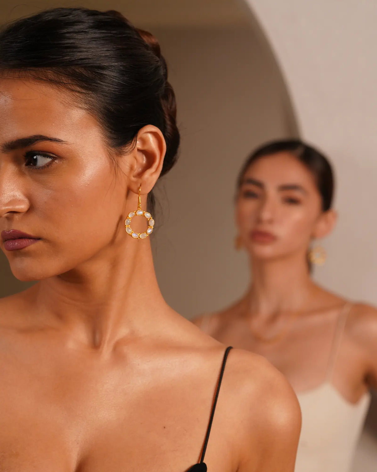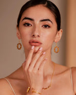 Our gold jewelry is hand-crafted in 18K gold on brass. To avoid oxidization of the gold plating, avoid extended direct contact with water, cleaning solutions and perfumes. For best care, store your jewellery in the provided original packaging.