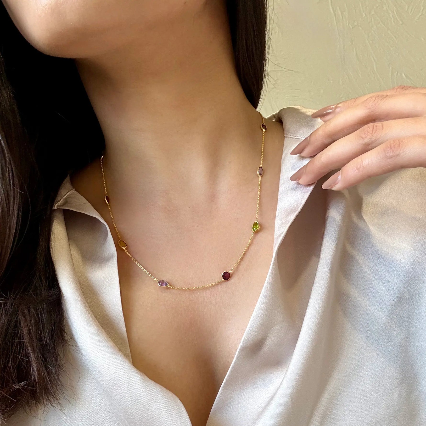 Natural semi-precious stones have been used to make your jewellery pieces. Every gemstone is unique and will have slight variations in size, colour, shape and inclusion compared to the ones displayed on the website.