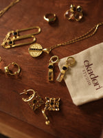 Our gold jewelry is hand-crafted in 18K gold on brass. To avoid oxidization of the gold plating, avoid extended direct contact with water, cleaning solutions and perfumes. For best care, store your jewellery in the provided original packaging.