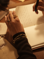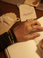 Our gold jewelry is hand-crafted in 18K gold on brass. To avoid oxidization of the gold plating, avoid extended direct contact with water, cleaning solutions and perfumes. For best care, store your jewellery in the provided original packaging.