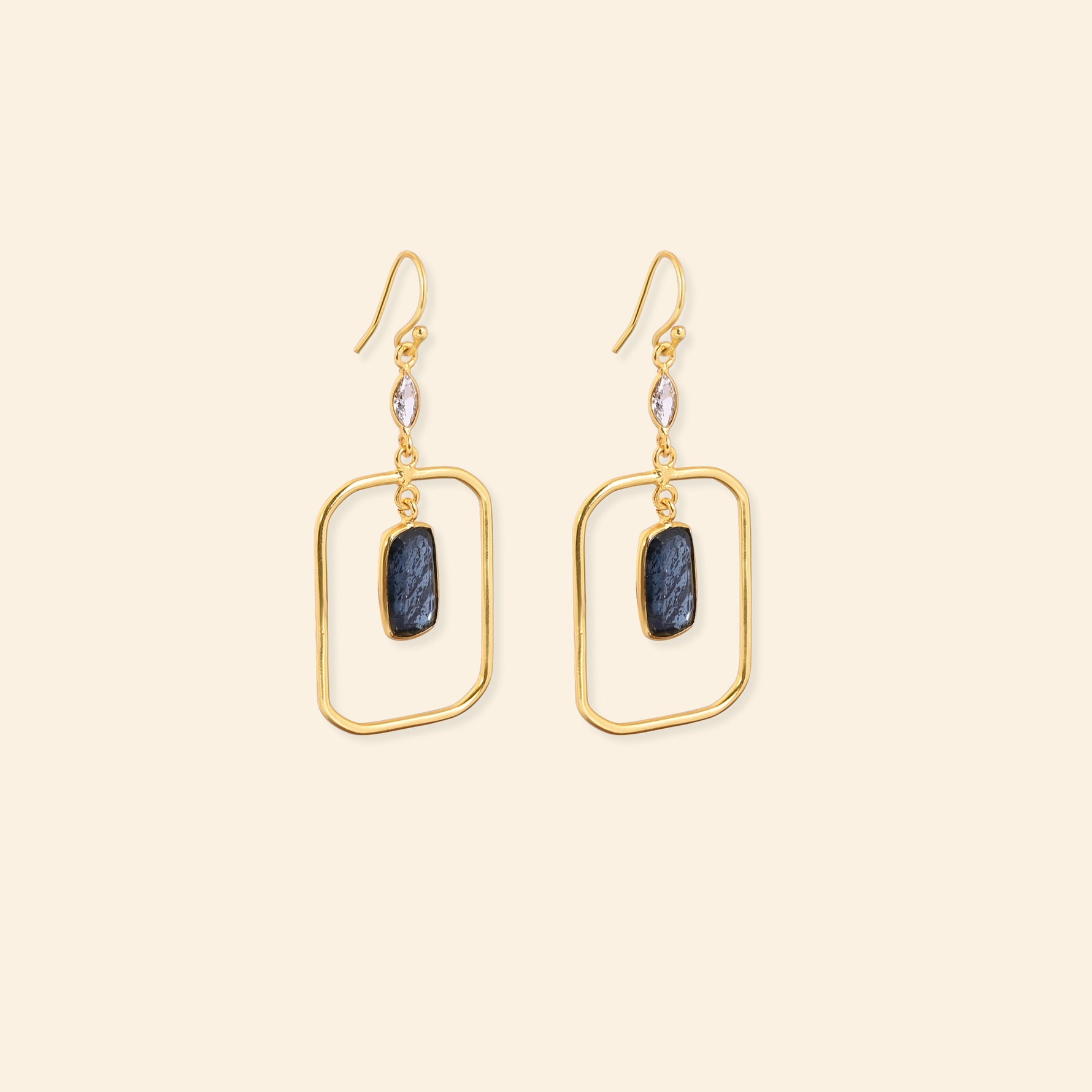 - Material: Brass-based earrings with 18-karat gold plating